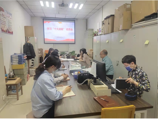 就高标准高质量开展“十大战略”学习,刘建伟书记提出三点意见:一是提高政治站位,充分认识开展“十大战略”活动的重要性必要性紧迫性。开展“十大战略”活动,是省委作出的一项重要的决策部署,财务处上下要把思想和行动统一到省委决策部署和省委高校工委工作要求上来。二是党员干部要发挥好示范引领作用,要躬身入局,主动对标对表找差距,把本职岗位、正在推进的工作作为提升能力、锤炼作风的练兵场。三是要坚持以活动促工作,以工作促活动,把开展“十大战略”“能力作风建设年”活动与财务工作结合起来,把党员干部激发出来的巨大热情转化为做好服务与保障工作的强大动力,把活动成效转化为今后工作的出彩答卷。